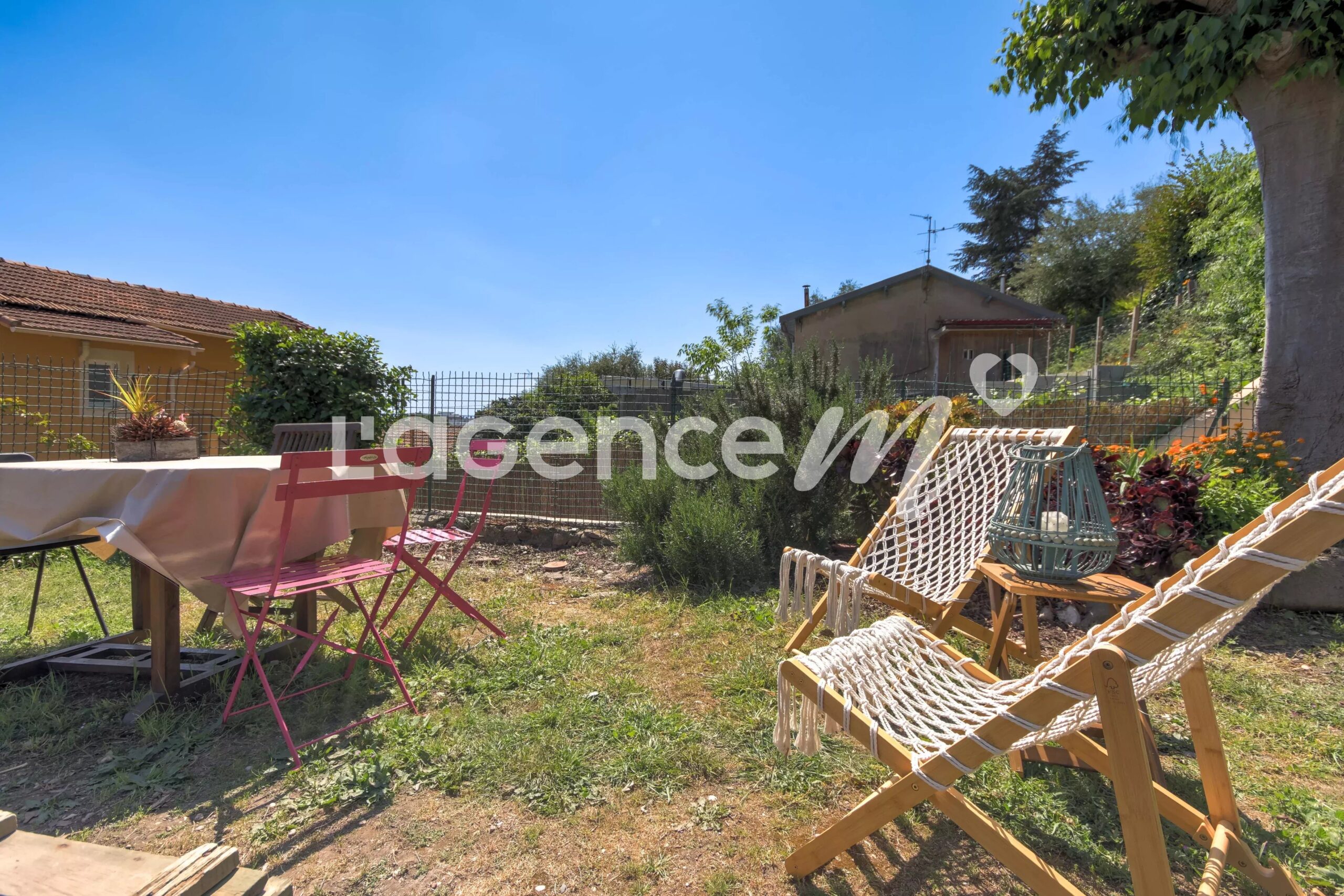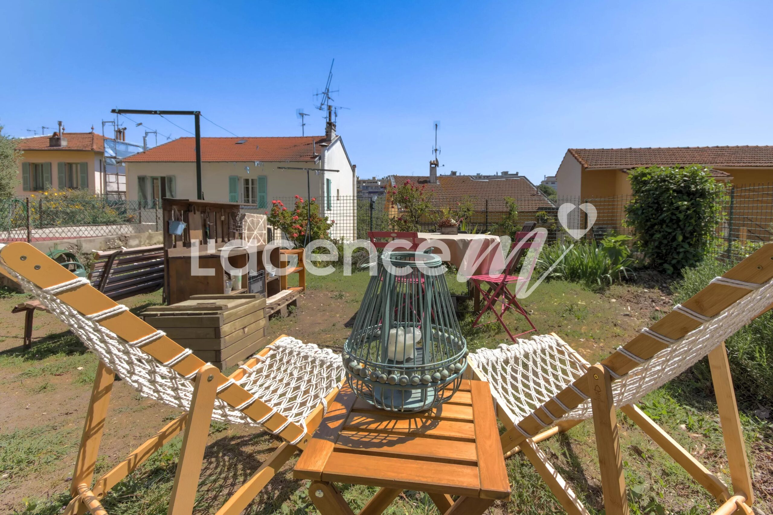 La particularité de cet appartement bourré de charme, c’est son vaste jardin de plus de 100 m2 qui se trouve juste devant la maison, au bout d’une parcelle qui a été divisée pour que chaque voisin puisse profiter de son jardin comme il l’entend, il y a 7 copropriétaires en tout, c’est une petite maison niçoise où tout le monde se connaît et tout le monde se respecte. Dans votre parcelle de jardin, vous pouvez y faire ce que vous souhaitez, y mettre une table, des transats, un potager, planter ce que vous voulez.