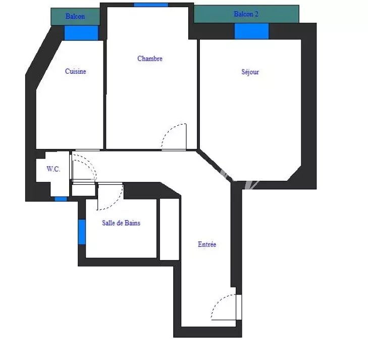 L’appartement se compose d’un séjour lumineux avec parquet en bâtons rompus et un premier balcon, d’une chambre au calme, d’une cuisine indépendante donnant sur un deuxième balcon, d’une salle de bain avec fenêtre, d’un WC séparé avec fenêtre et lave-mains. De belles moulures viennent agrémenter l’ensemble. Nombreux rangements et une grande cave en sous-sol très pratique.