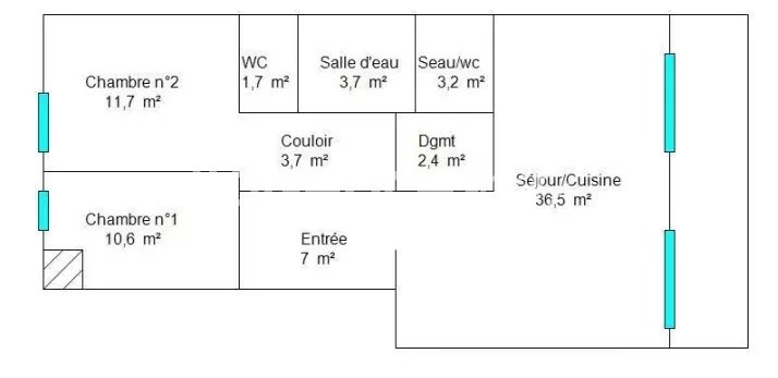 C’est un 3P, ancien 4P de 81 m² au 2e étage avec ascenseur. Il serait très facile à reconvertir en 4P si besoin.