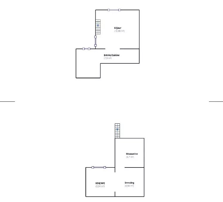 L’appartement fait 36,18 m² Carrez et s’organise sur deux niveaux, ce qui change tout. On n’est pas dans un deux pièces classique.