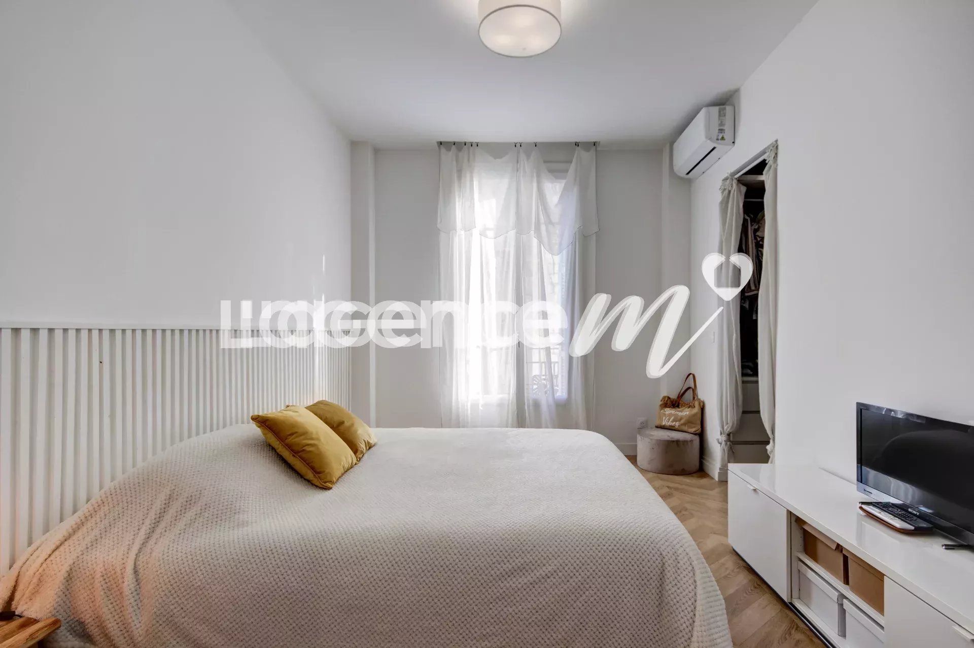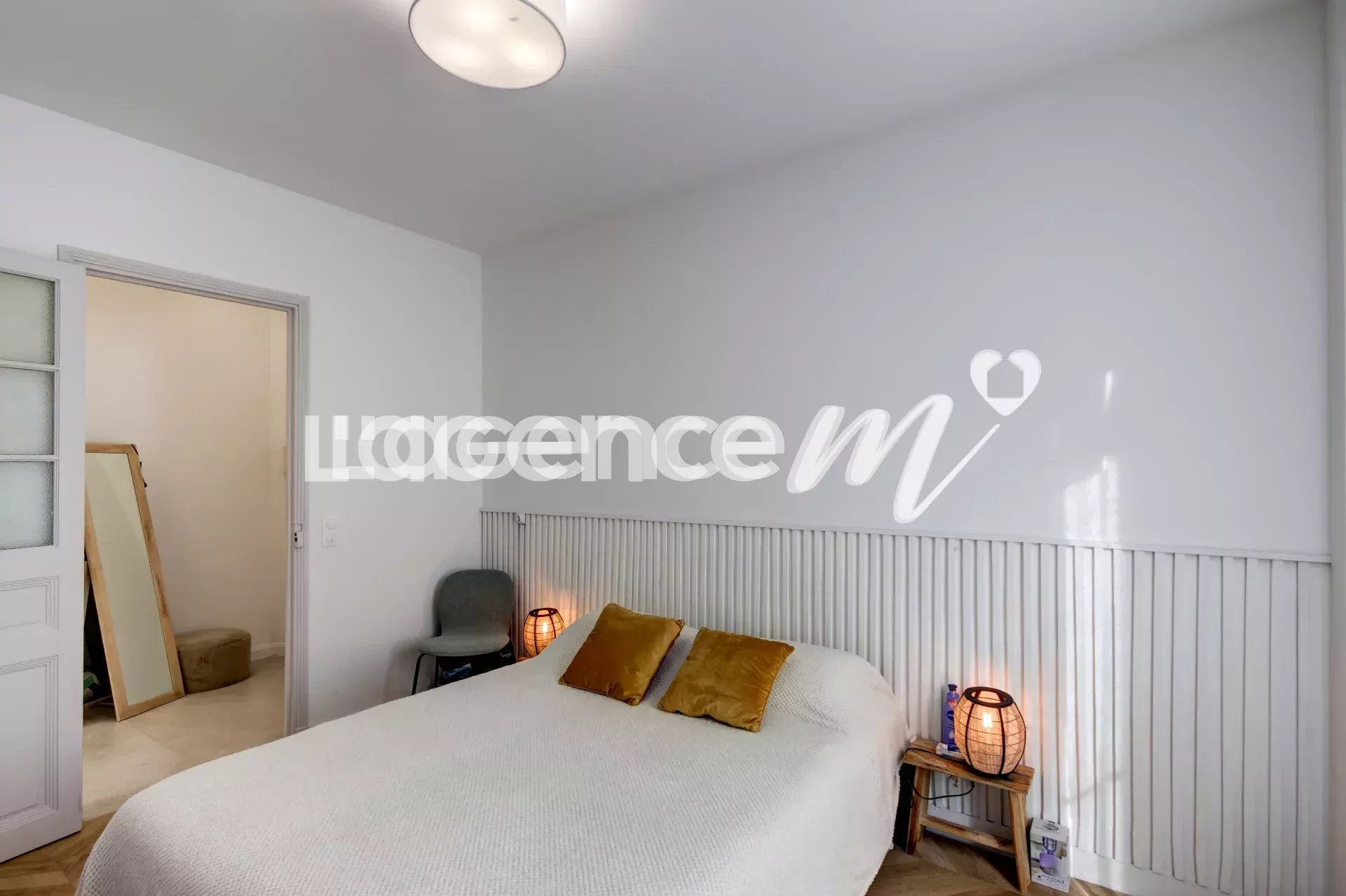 The apartment is bathed in light thanks to its double South-West exposure but also thanks to its numerous bay windows. You will be seduced by its old character with high ceilings, parquet flooring in the bedrooms, all combined with a high-quality modern renovation. The spaces are perfectly optimized and the distribution is fluid and pleasant to live in. You will benefit from a large living room of around 32 m², as well as two quiet bedrooms: The first is around 13 m² with its dressing room and the second is around 10 m² where it is possible to put a 140 cm bed and also has a dressing room. Double glazing, air conditioning, fiber optics.