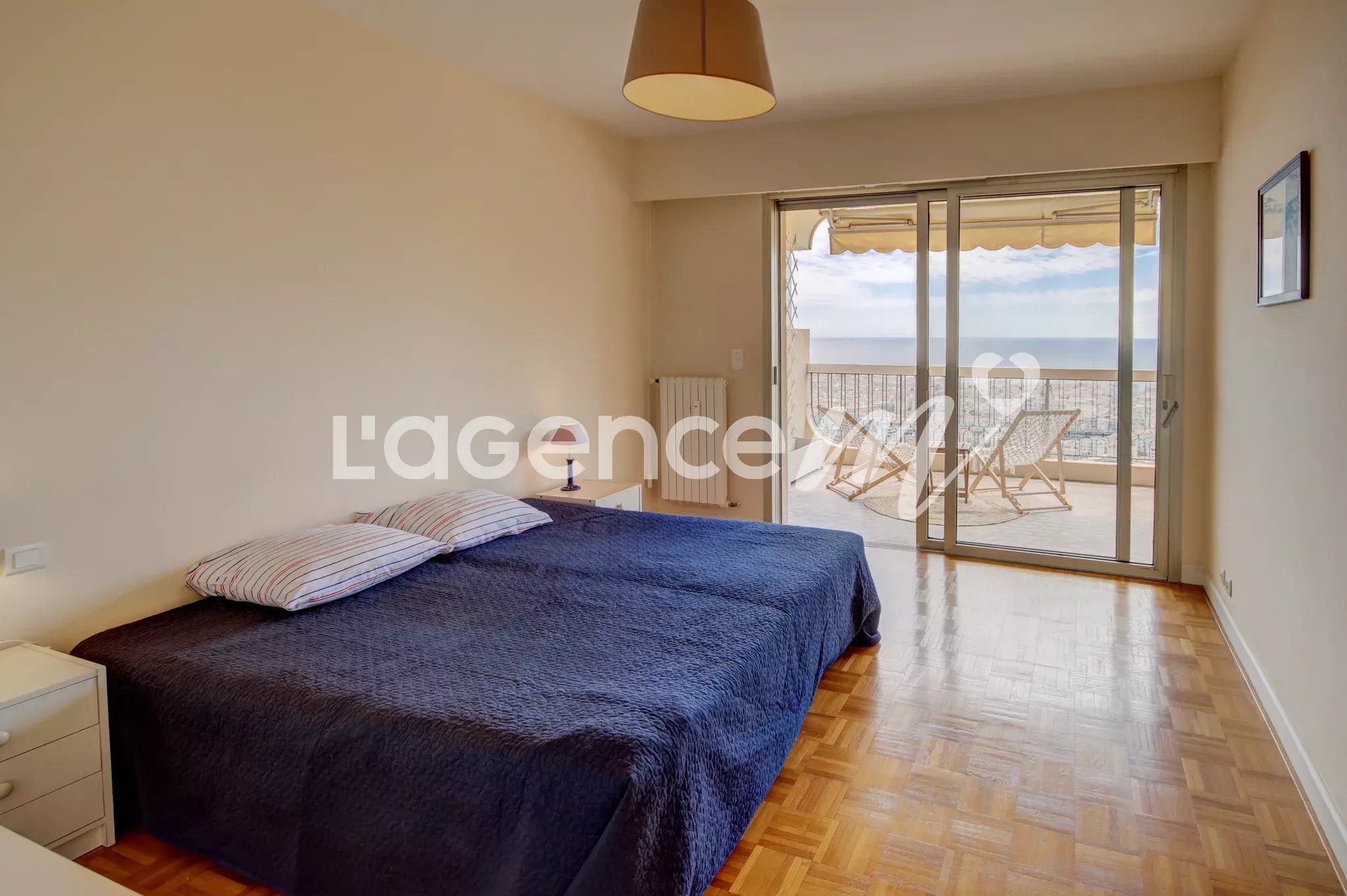 NICE PARC IMPERIAL – BOIS DE CYTHERE: SOLE AGENT, new since April, in the luxurious condo “les jardins du Bois de Cythère” come visit “ULYSSE” a superb and spacious 2-room apartment of 90 sqm on the 2nd and penultimate floor with elevator. You will find yourself in the most sought-after entrance of the residence, “LEDA” with its large 17 sqm south-facing terrace and stunning full sea view.