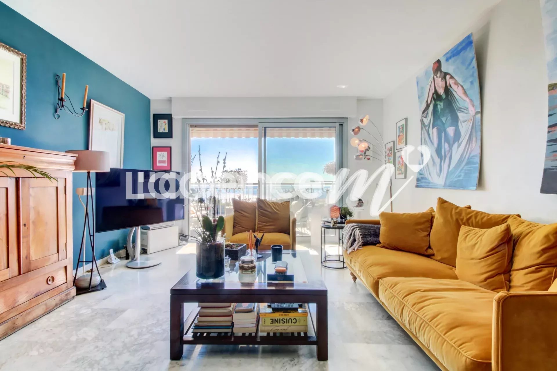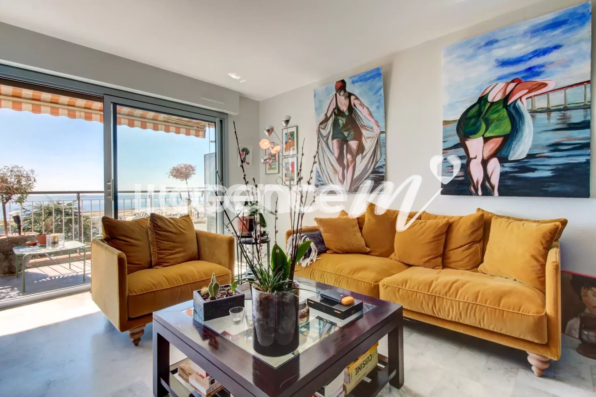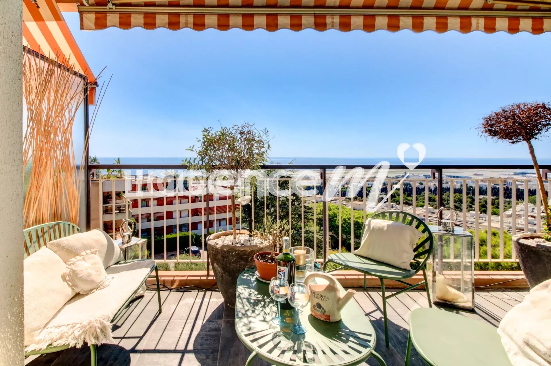 The best part of this apartment? A beautiful south-facing terrace with 180 degree PANORAMIC SEA VIEW as far as CAP D’ANTIBES!