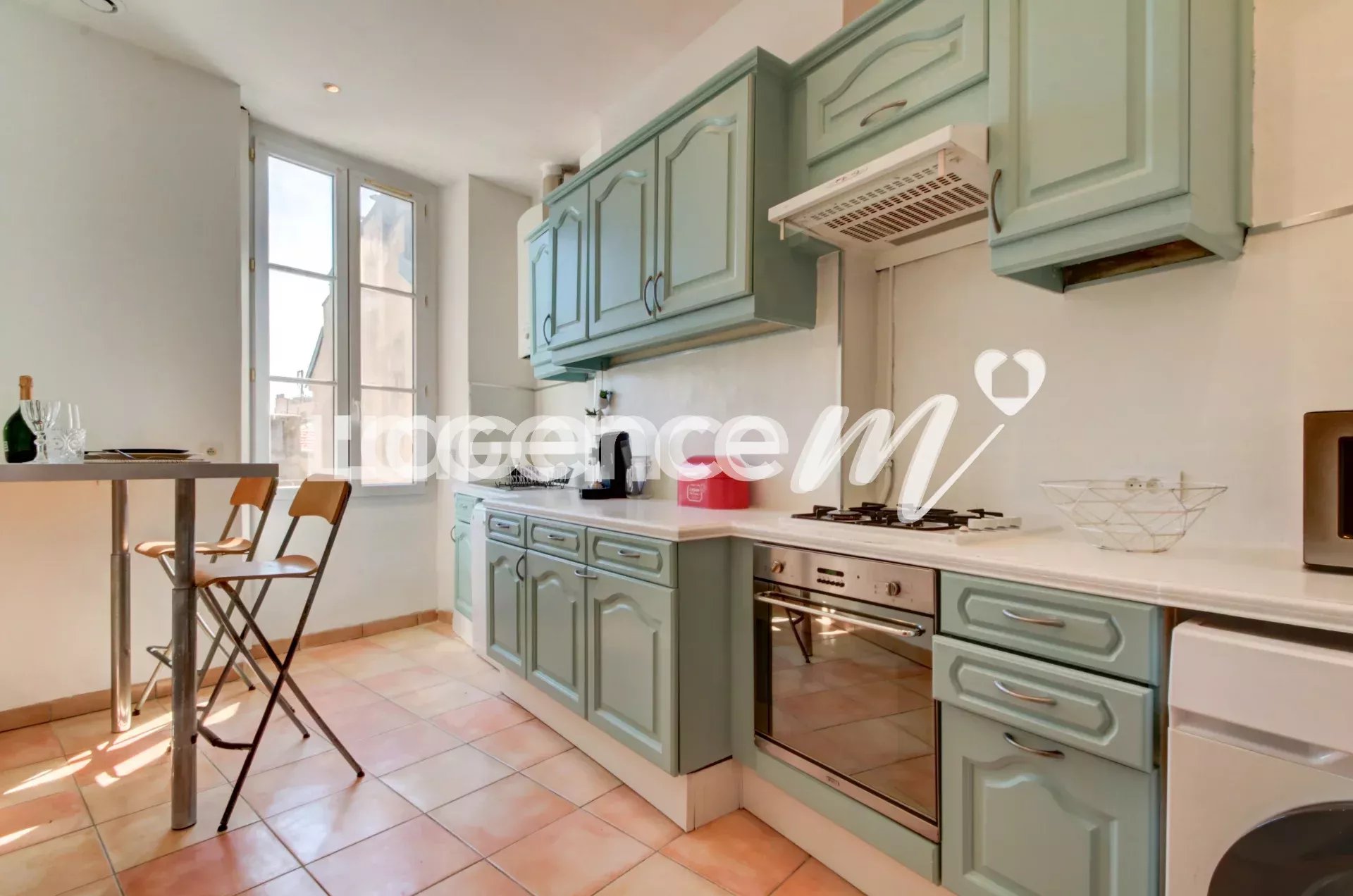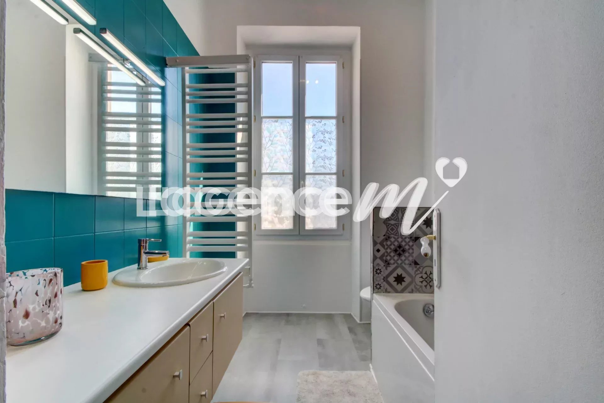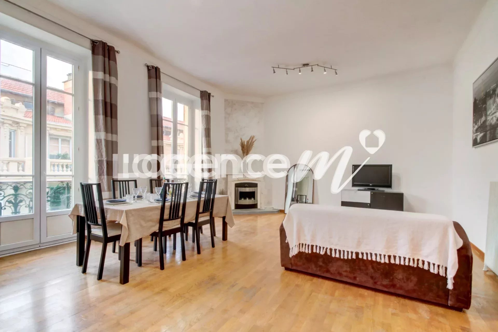 The booming district – thanks among other things to the ICONIC project – benefits from a premium location, right in the center, a stone’s throw from the tram, shops, very good schools and the SNCF station. The apartment, in very good general condition, offers generous volumes, as evidenced by its 33m² living room. You will also appreciate the character of this construction with its ceiling height of almost 3.30m and its beautiful parquet flooring. This top floor will offer you calm and light thanks to its numerous bay windows and its double exposure. With its view of the rooftops of Nice as well as its modern comfort, it will please as many people as possible; it has air conditioning, double glazing and fiber optics. This superb apartment is suitable for several projects because it brings together 2 bedrooms on the first level and a bedroom upstairs (nearly 15m² on the ground) with double access, which can also be used as an office! All you have to do is decorate it to your liking to make it a real gem. It has a bathroom with WC AND a shower room with WC also. Don’t miss this great opportunity to live in this gem in the heart of the city.